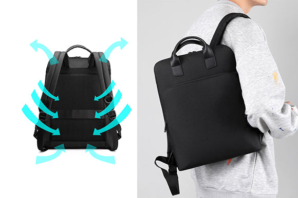 リュックの後ろは通気性に優れたスポンジ素材を採用し、触り心地よくて蒸れません。