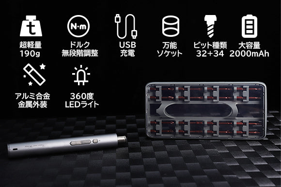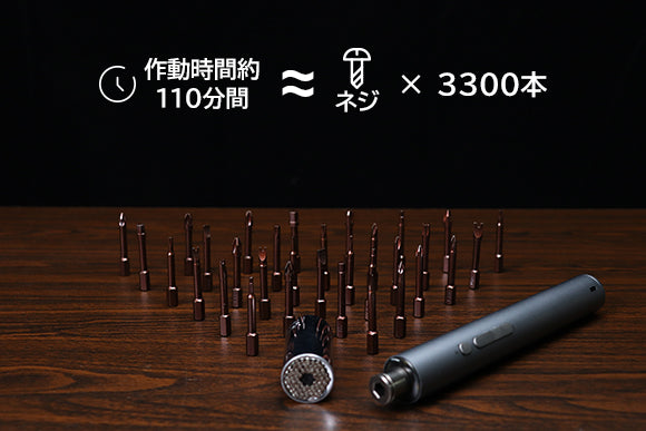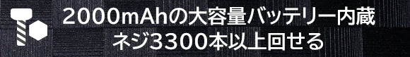 ■2000mAhのバッテリー搭載、回せるネジが3300本以上