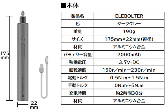 「ELEBOLTER」は手触りがいい金属外装を採用し、高級感が溢れる外見と優れた放熱性を兼ね揃えています。