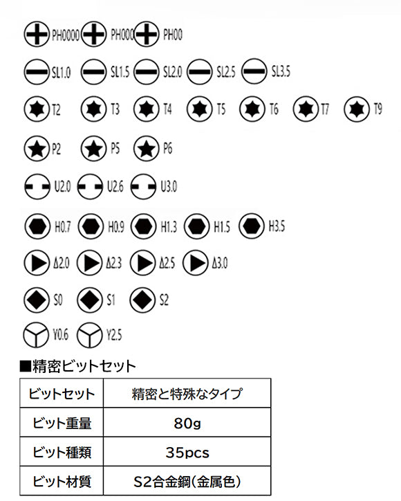 ■精密機器や特殊ネジ用の35種類のビットセット