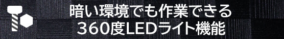 ■暗い環境でもスムーズに作業できる360度LEDライト機能