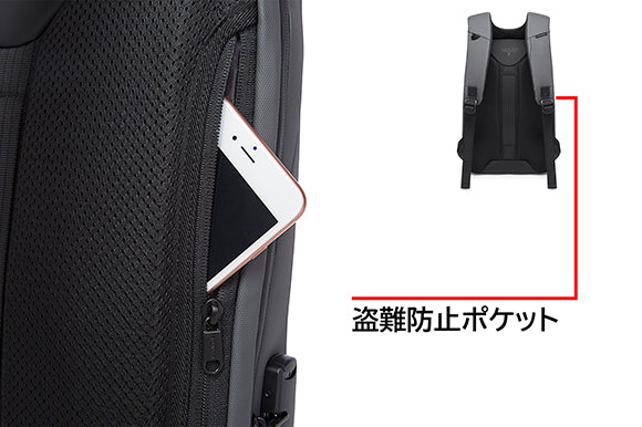 安全性を高めるのため、リュックの後ろには、財布などを安全に入れる隠しポケットが設置されています。