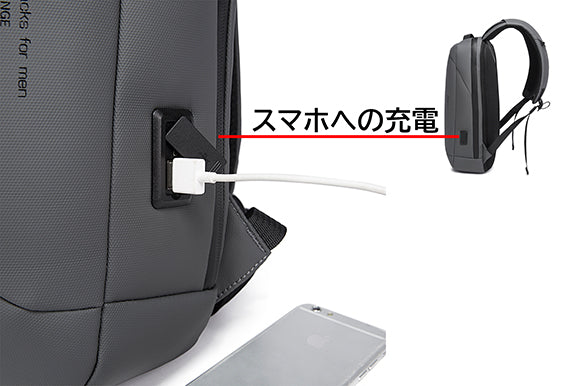 従来のUSBポートはバッグの外側に取り付けるものが一般的ですが、「B&G」リュックはUSBポートを中に設置されており、リュック全体がより美しく見えます。
