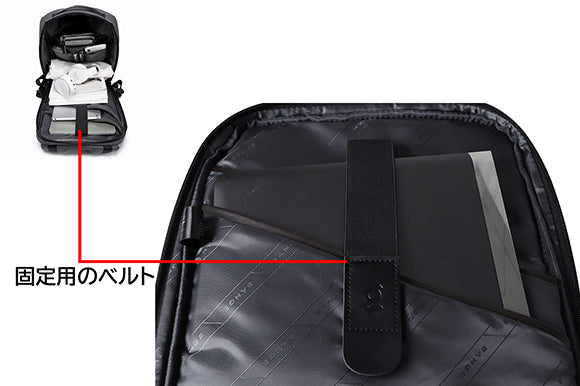 貴重なノートパソコンやIPADをよりよく保護するため、固定用のベルトが付いています。