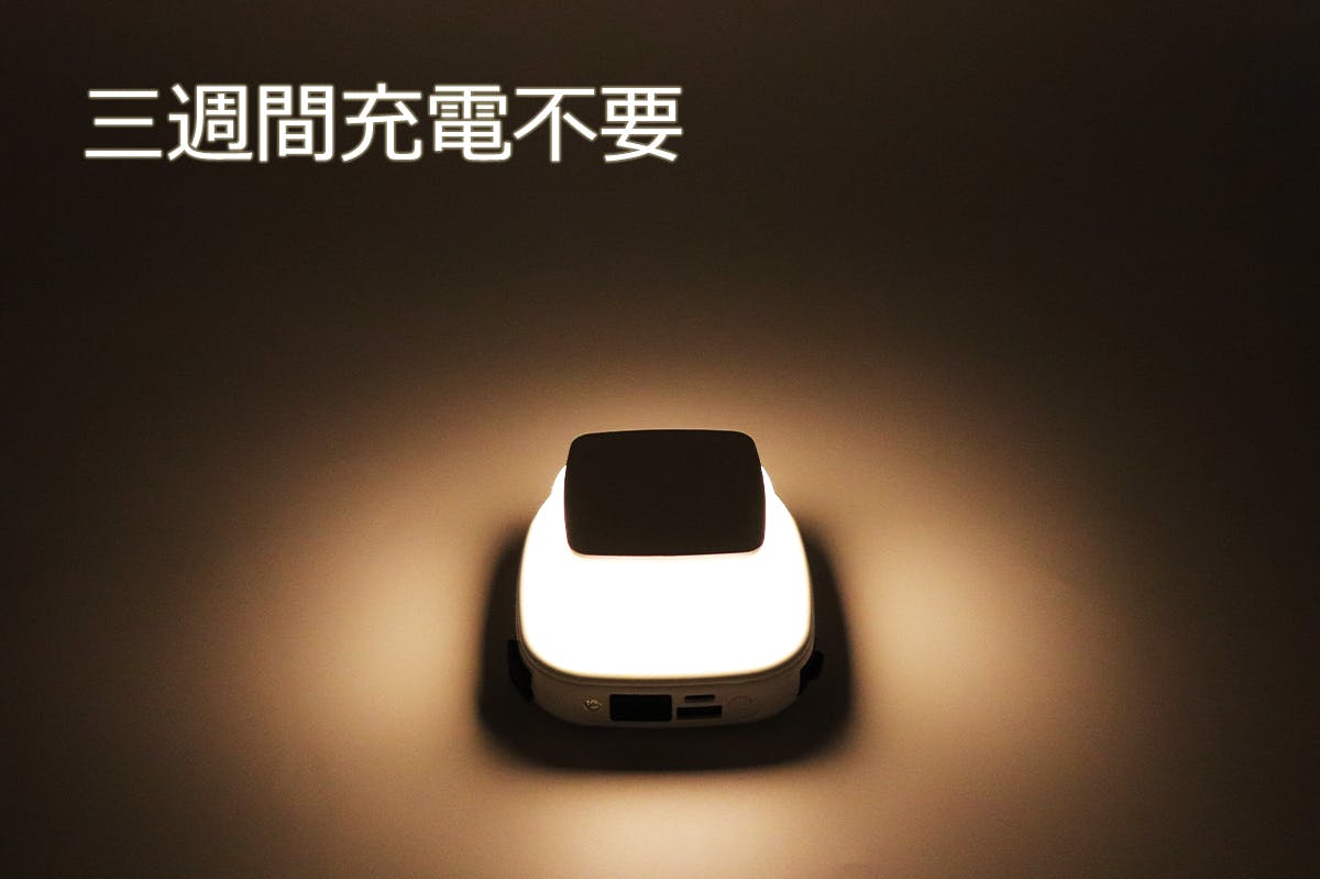 省エネのライトを使用したため、連続利用時間約180時間、毎日8時間では約3週間利用可能。