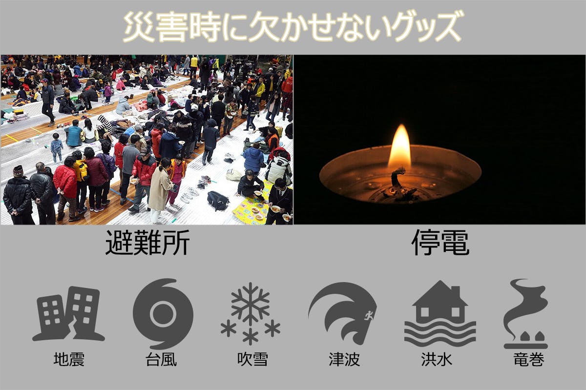 災害時に長時間の停電は珍しくありません。デバイスへの充電の他に、長時間利用できる光として優秀です。例え避難所にいても目に優しい光は嫌な目をされません。