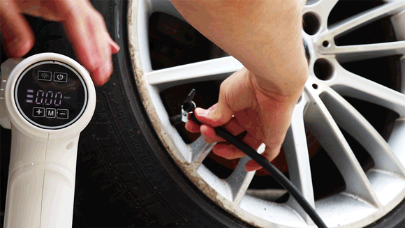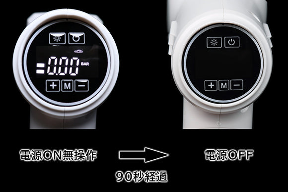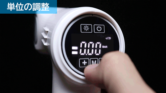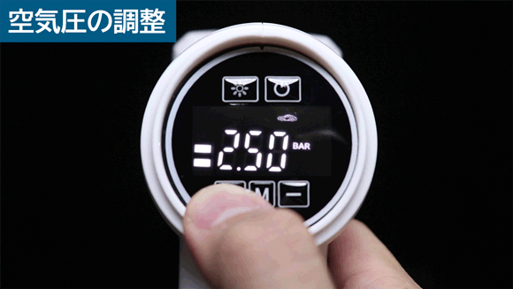 空気圧を設定した後軽く押せば、空気を自動的に充填開始。設定された空気圧に達すると自動停止するため、傍で見守る必要がありません。
