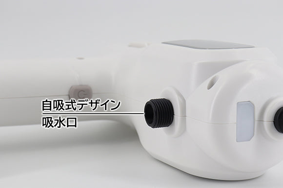 水を吸い上げる自吸式デザインを採用し、家でも外出先でも、水があればどこでも洗車できます。