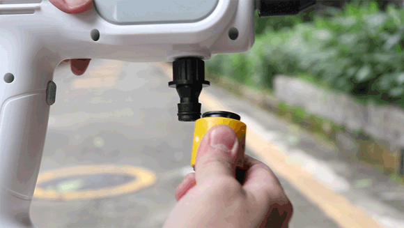 洗車する時、ホースと本体と接続し、吸水口を水に入れ、スイッチを押すだけですぐに洗車できます。
