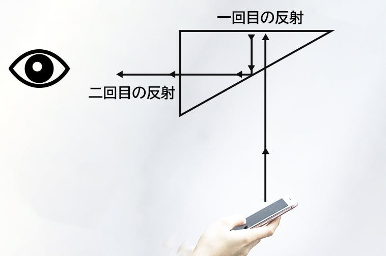 二回目の反射により、見たものが通常になり、同時に90度見下ろす効果が実現できます。