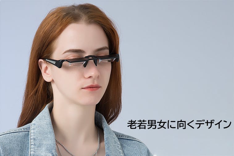 「Gulais」をかけると、頭を下げずに読書やスマホを使うことができるようになり、そのほか、元々メガネをかけている人たちでも使えるようになります。